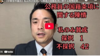 選挙・政党 公務員採用には『国籍条項』が必要だと思います! YouTube『宇都宮市議会議員 河田敦史』動画紹介。亡国を呼び込む「外国人受け入れ政策」。地方レベルでも外国人受け入れは加速しており、この度宇都宮市議会では「公務員の国籍条項に関する陳情」が不採択となりました。 選挙・政党