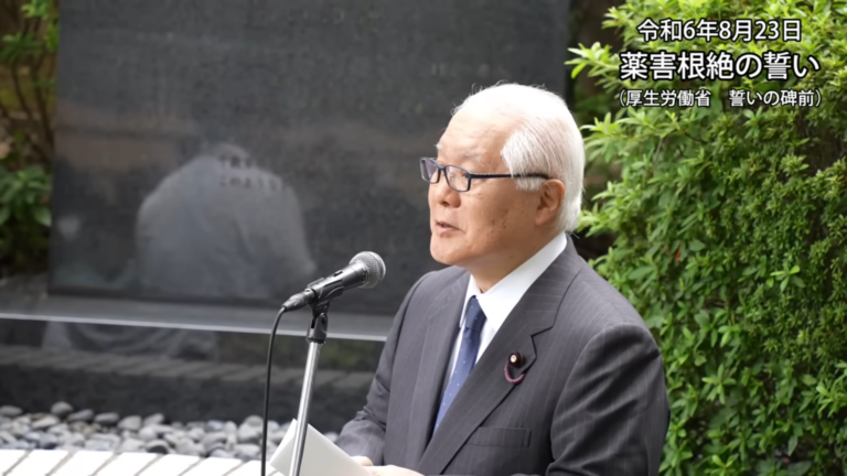 ↓に紹介する動画では、薬害根絶デー(毎年8月24日)に合わせ、薬害根絶『誓いの碑』を前に武見厚労相が語った(2024年8月23日)「誓いの言葉」が収録されています。
