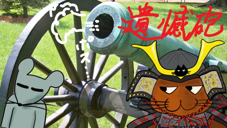 画像説明:【ポスって・・】なぜか自国に向けて放たれる歴代遺憾砲を疑問視する善良なケモノの会の図
