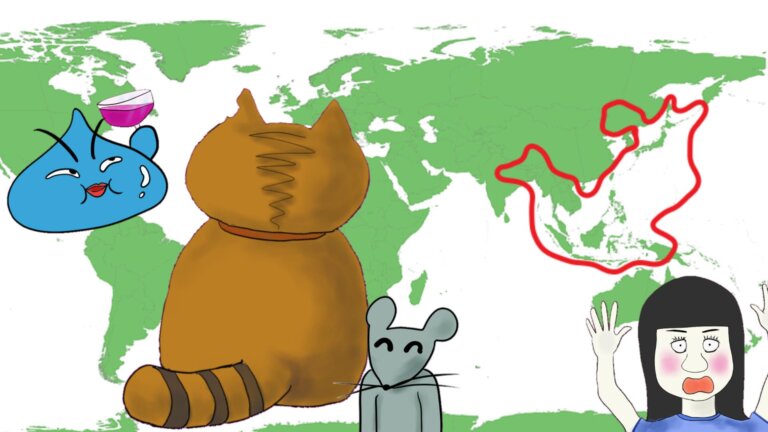 画像説明:【タヌキ版ラインの説明】日本が共に栄える共栄圏です・感慨深いケモノ衆の図