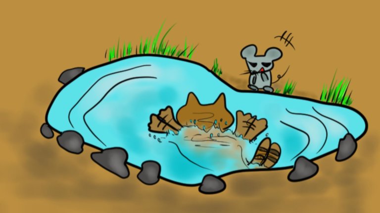 画像説明:【ま、浅いんですけどね♡】溺れてないけど助けてほしい甘えん坊なタヌキとニヤけるお友達の図