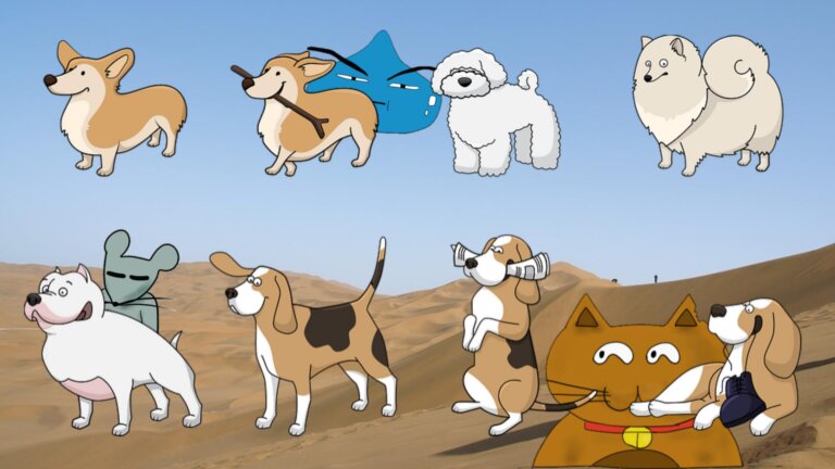 画像説明:【困った時ほどよく吠える】実は国土も経済も評判も砂漠化が進行中のシナを見つめる図