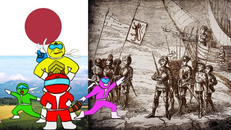 画像説明:【家族でコスプレ♪】魔女裁判と植民地支配の精神性に防衛本能が働くタヌキ一家の図