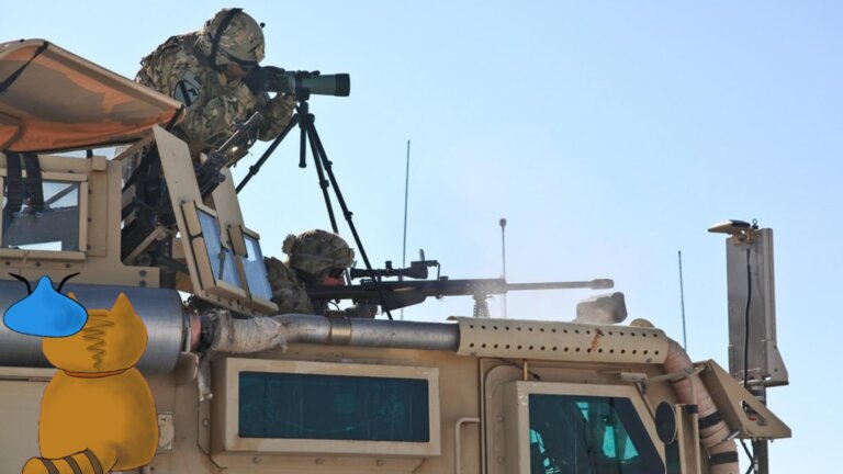 画像説明:【アフガン怒りの撤収】様々な思惑を乗せ撤退する米軍を見つめるタヌキの図
