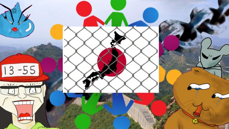 画像説明:【金網が日本に】連帯する利益は小、遮断出来ない不利益は大・・と見積もるケモノ衆の図