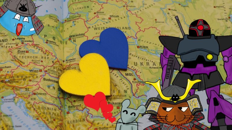 画像説明:【カネよりも物資を、物資よりも核の傘を!】ウクライナが欲する”当然”を理解するケモノ衆の図