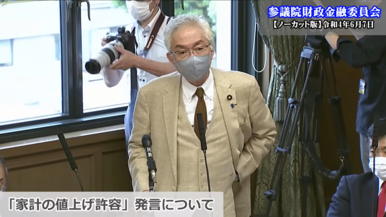 画像出典:西田昌司チャンネル:異次元緩和を継続せよ!!実需が伸悩む中で利上げなどあり得ない!【西田昌司 参議院財政金融委員会質問 令和4年6月7日】より