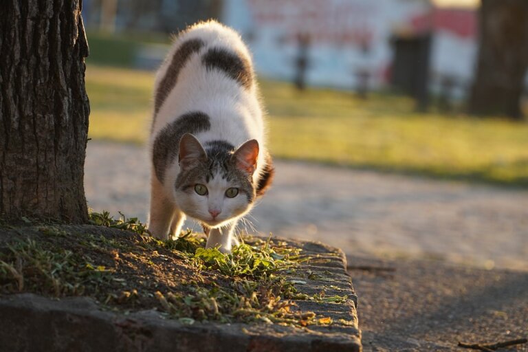 画像説明:【~ガン見中~】猫さん猫さん!そんな”尾行”じゃ~バレるって!!