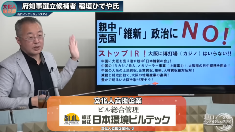 画像出典:文化人放送局:【親中売国維新】と声を上げる政治家が!大阪府知事選の立候補者に【山口インテリジェンスアイ】山口×さかき(スクショ)