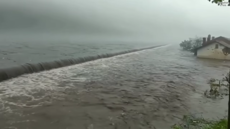 ↓の濁流を見て下さい。単なる洪水でないことはその水量を見ても一目瞭然だと思われます。