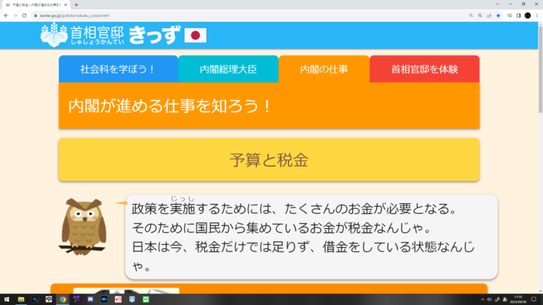 画像出典:首相官邸きっず「予算と税金」(スクショ)