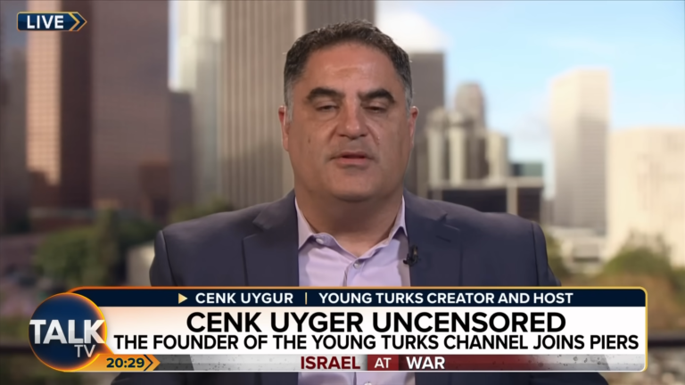 ピアーズ・モーガン・無修正番組に、『ヤング・タークス』の司会者兼制作者、大統領候補のチェンク・ウイグルが加わり、イスラエル、ハマス、パレスチナ間で進行中の戦争、そしてイスラエルによるパレスチナの扱いと占領がハマスの扱いと同じくらいひどいのかどうかについての情熱的で感情的な議論について議論する。イスラエルへの攻撃。チェンク氏は「イスラム教徒やパレスチナ人に対する偏見にはもううんざりだ」と述べ、イスラエルによる残虐行為よりもハマスによる残虐行為のほうがはるかに多く報道され、公的に非難されていると説明した。同氏は、イスラエル政府がテロ集団の3倍の民間人を殺害しているのに、なぜ人々はイスラエル政府をテロリストと呼ばないのか疑問を抱いている。