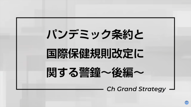 今回は、国連やWHOに潜んだNWO・新世界秩序の企みの数々について、みなさんと情報共有するためにChGrandStrategy(様)作成動画『パンデミック条約と国際保健規則改定に関する警鐘(後編)』を紹介しました。