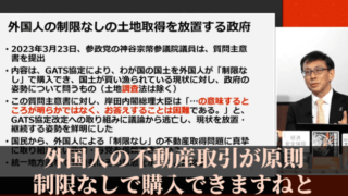 戦争・国防 外資土地取引規制の闇:神谷議員提出・質問主意書の中身 我が国政府は、外資による土地買いあさりを規制する気はないようです。神谷氏が提出した質問主意書に、ほぼすべて「○○の意味するところが明らかでなく、お答えすることは困難である」と無責任な回答をよこしています。GATS協定・憲法98条2項。 戦争・国防